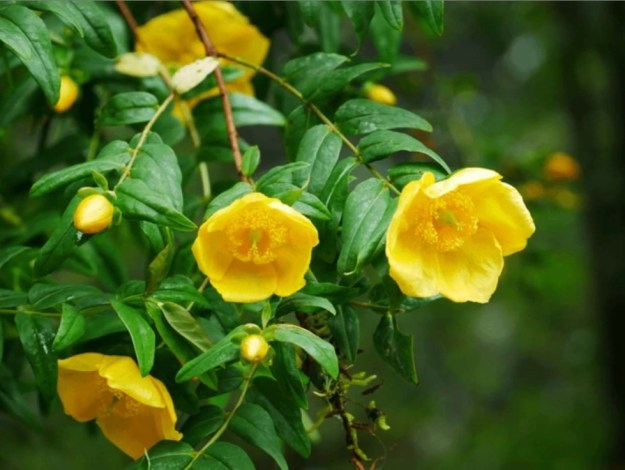 Some examples are (left to right below), Hydrangea (goes blue with Aluminium in an acidic environment), Camellia japonica (some cultivars produce purple flowers through Aluminium chelation), Camellia chrysantha (deep yellow colour comes from Aluminium chelation with quercetin flavonoids), and Centaurea cyanus (Cornflower) which requires Iron and Magnesium for its blue colour, as do Petunias.