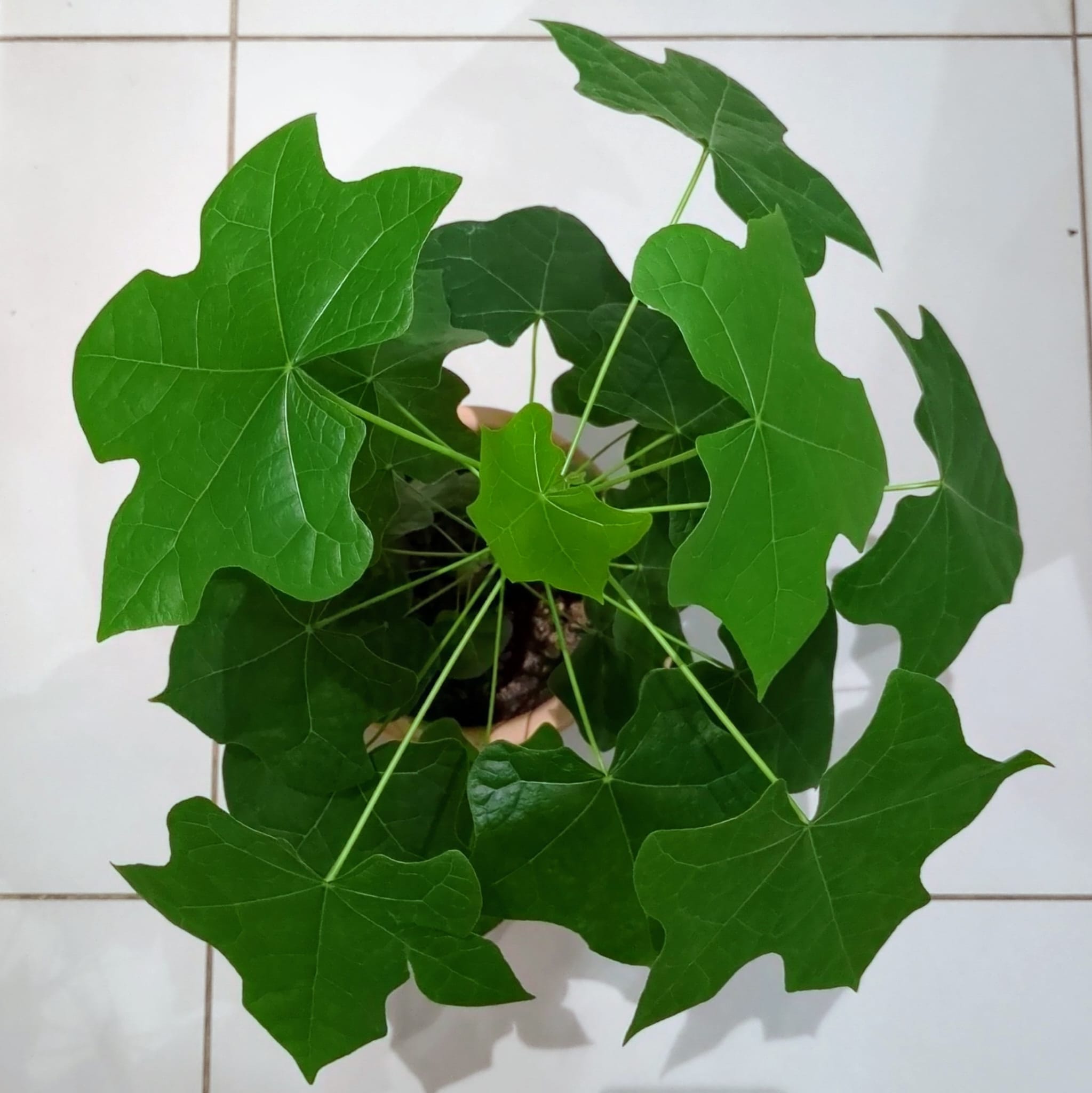 One study found a logical sequence of developmental phases based on biochemical factors which turned on certain genes.ref They found that substances which are important for embryo development in the seed promote the initial vegetative phase. It’s then sugars – the product of photosynthesis – which contribute to an ‘adult’ vegetative phase change. So continued photosynthesis and the production of more sugars over time, promote phase change. Plant growth regulators (aka phytohormones) also play a role, with Gibberellin A3 shown to revert ivy back to juvenile foliageref, although the exact interplay with auxins and other substances is still not clear as of 2020.ref A key finding from this study was that defoliation delays vegetative phase change – so don’t defoliate or prune if you’re trying to develop mature foliage!